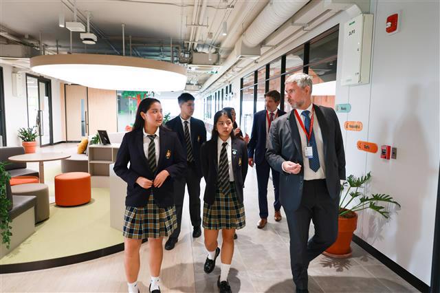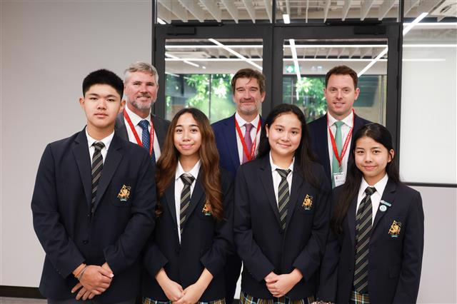 Four Senior School students who had previously taken part in exchange visits to Wellington College UK - Dew, Sainahm, Ploen and Miki - gave a tour of the school to a group of the College's staff this week.