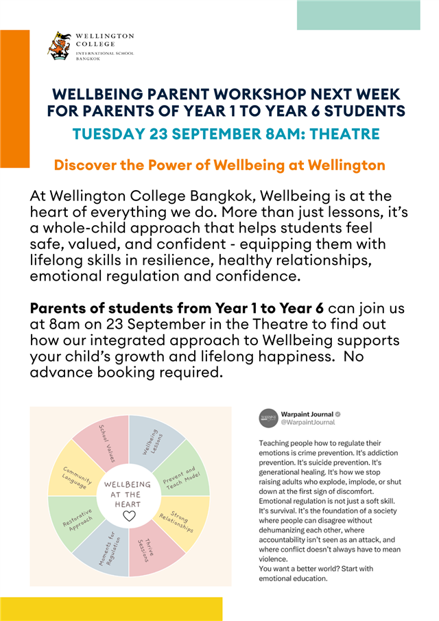 If you have friends, family, or colleagues who are interested in enrolling their children here this year or at any point in the future, please share the poster with them, and don't forget that we offer a referral fee of THB 50,000 for both families. To view the Terms & Conditions for referral and make a submission, you can access the form by clicking the Open Morning image below, or via InWellington: