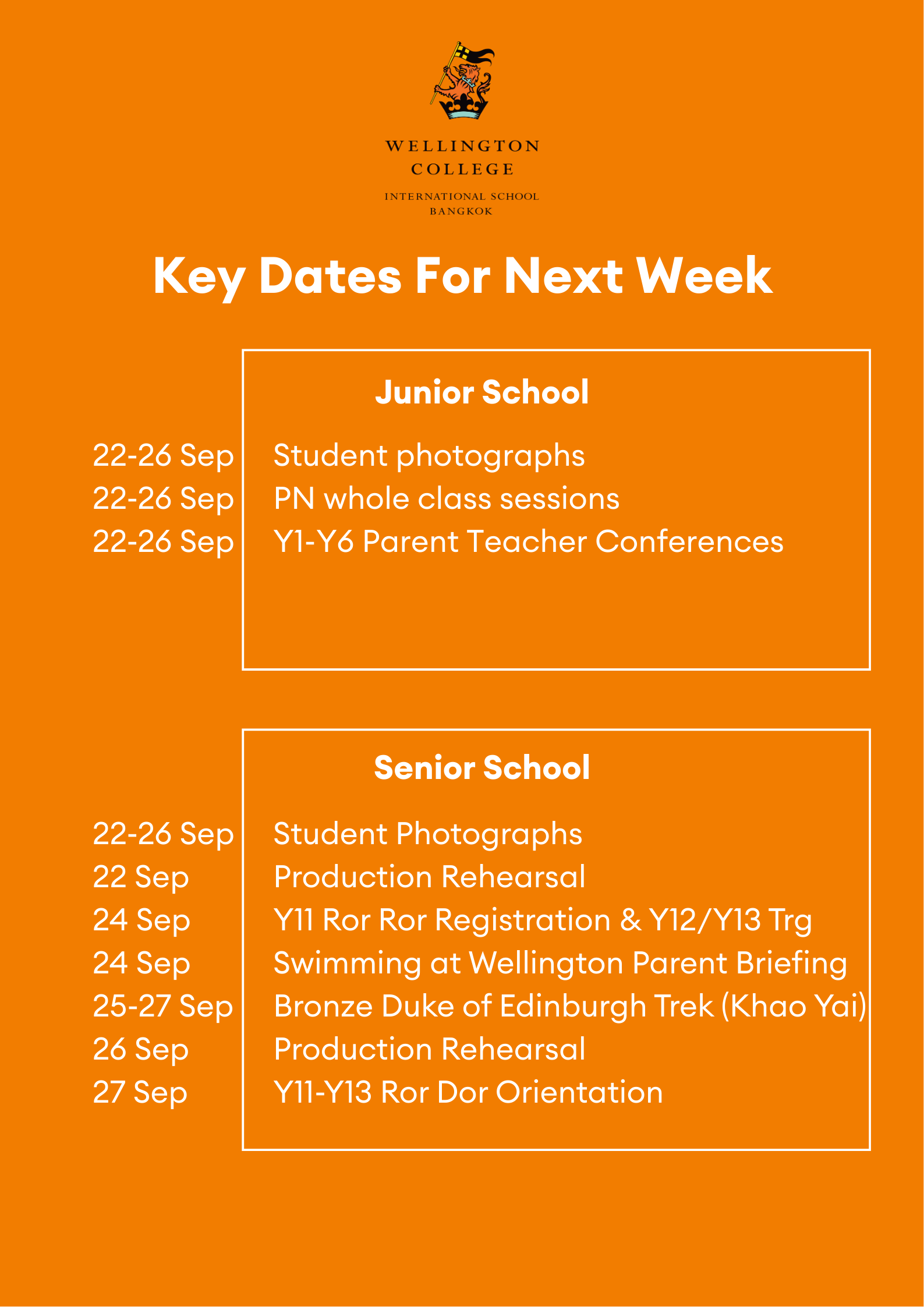 Looking ahead to next week, we have our Settling-In Parent Teacher Conferences for Years 1 to 6, which are a valuable opportunity to connect with your child’s class teacher and share how they are settling into the new school year. We also have our individual school photos taking place for children from Pre-Nursery through to Year 6 - so please keep an eye out for reminders from class teachers to help everyone be photo-ready. Full school uniforms are required!