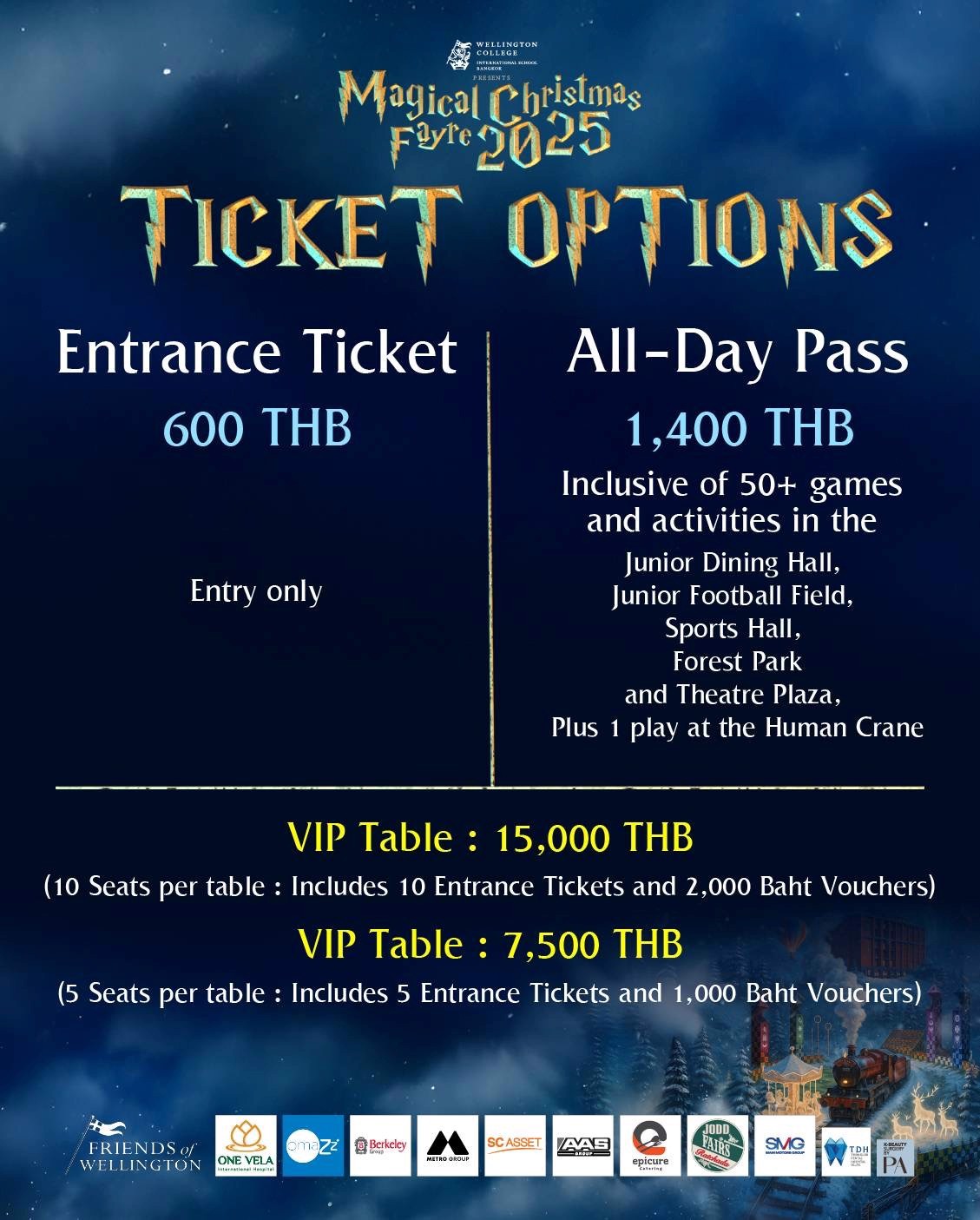 Please note that tickets for the Christmas Fair remain available for purchase at the following rates: