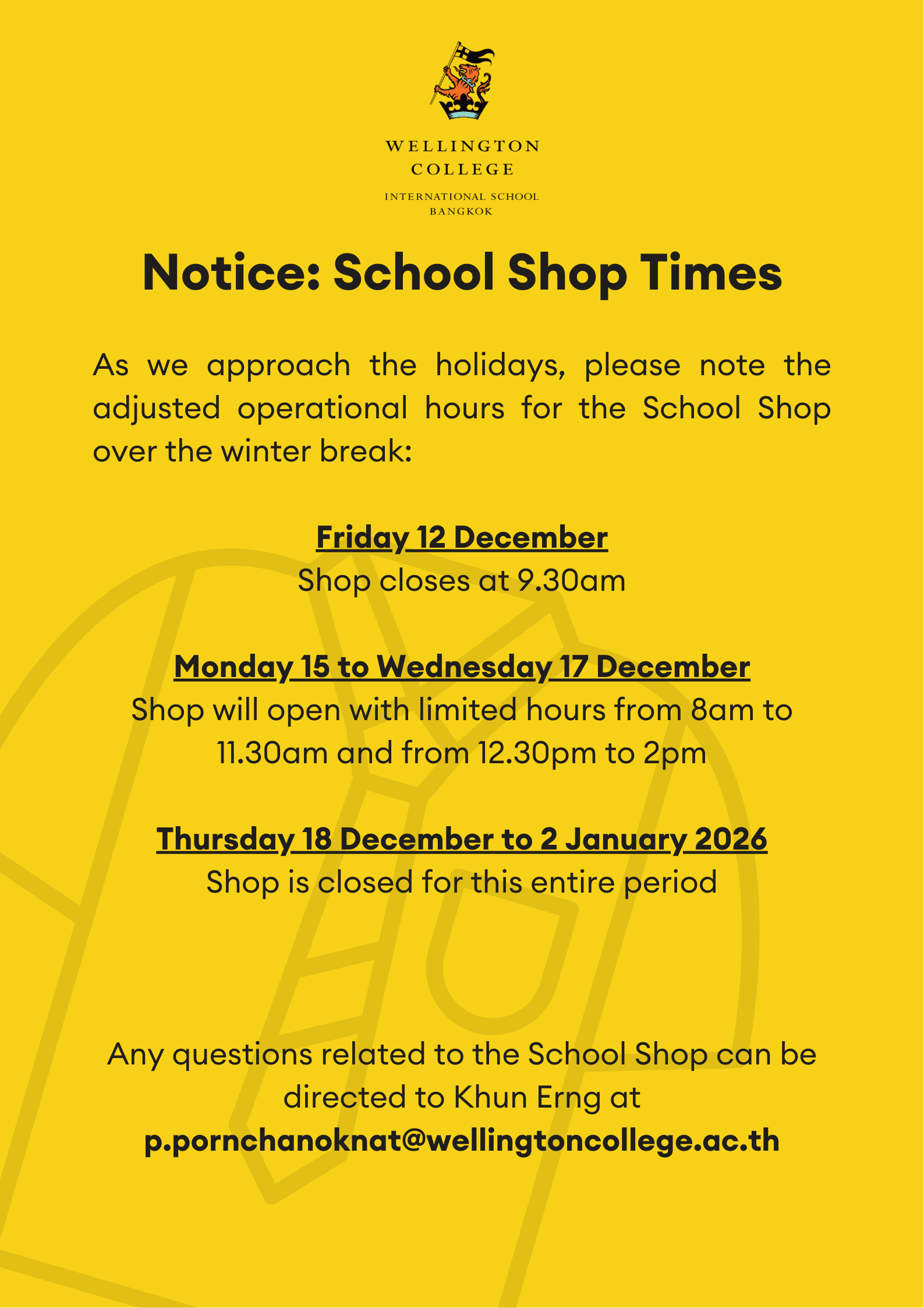Wishing you all a joyful festive season and a restful break. We look forward to welcoming everyone back on Tuesday, 6 January, for another exciting term.