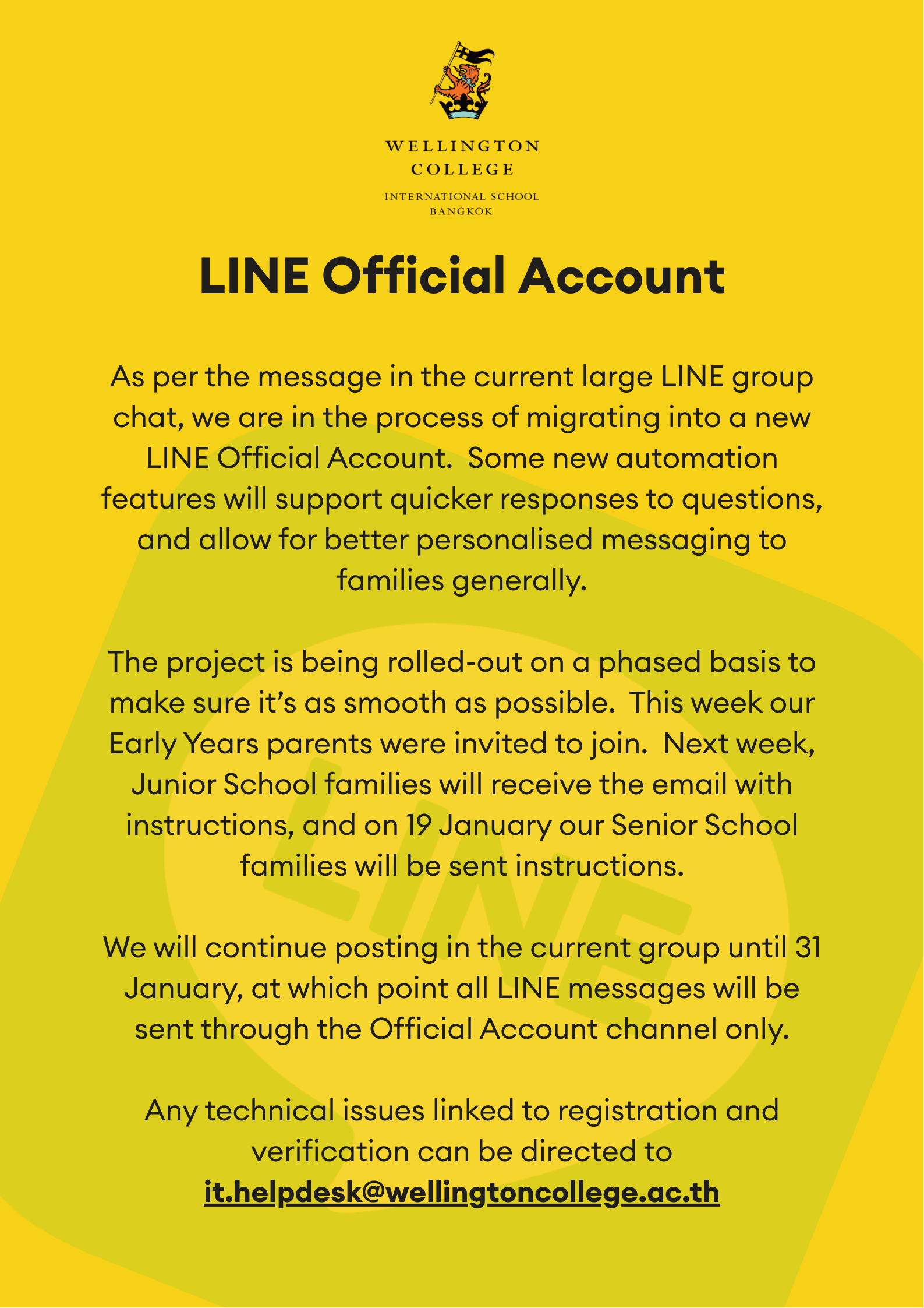We are currently in the process of upgrading our official Line group communication system. This group is a very useful way for us to communicate quickly with you, when we need to, and for you to ask questions and get the information you need. The roll-out is phased over this month, so: if you have received an email, please follow the (very simple) instructions; if you have not yet received an email, don’t worry – we don’t send them all at the same time.
