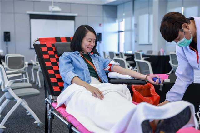 Thank you to everyone who came to support Thailand’s blood banks yesterday. The top floor of the Crowthorne Building transformed into a highly professional medical zone and parents, staff – even a student (over-18s only for blood donation) – came along. It is, of course, correct to donate blood if you are able to do so.