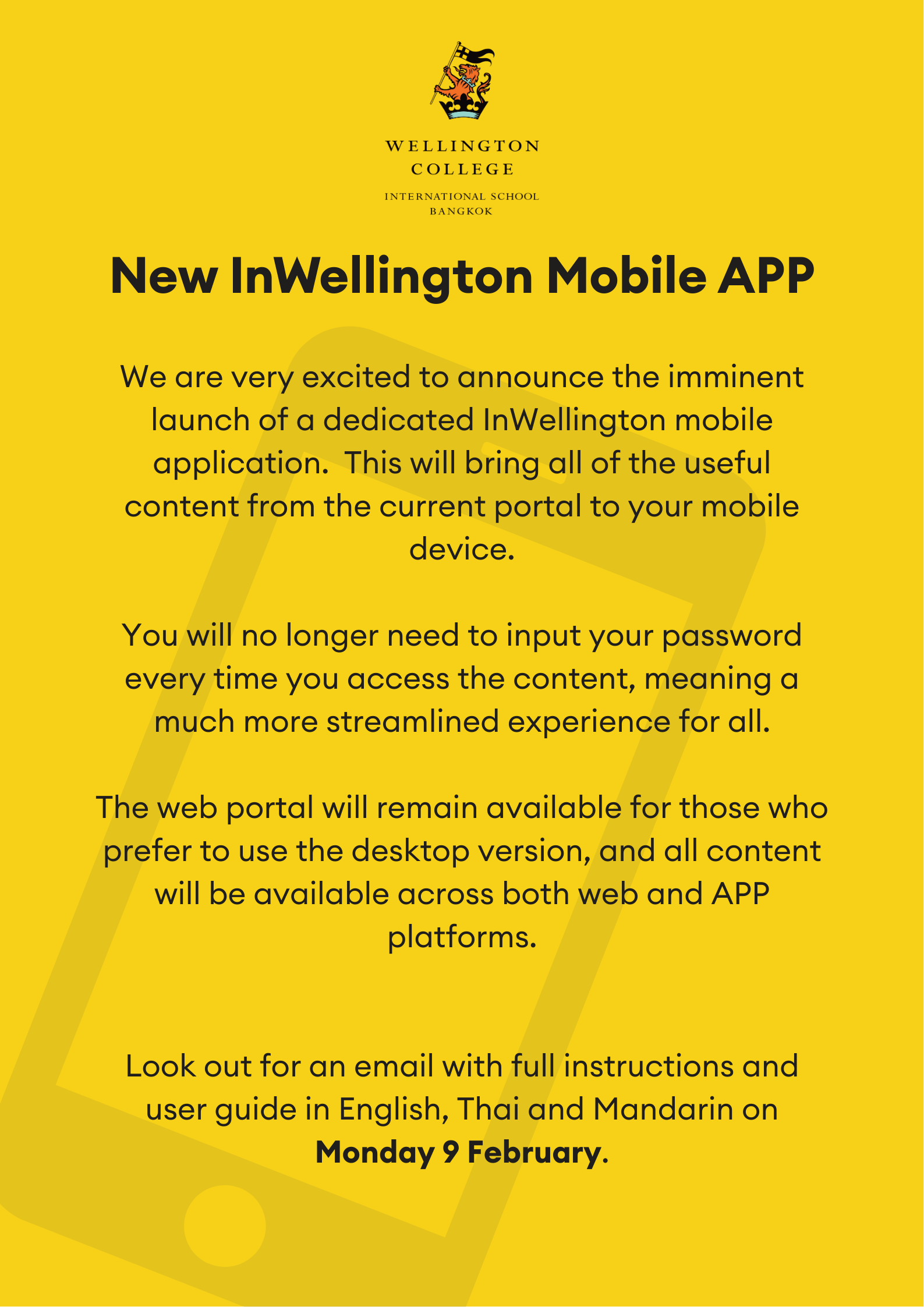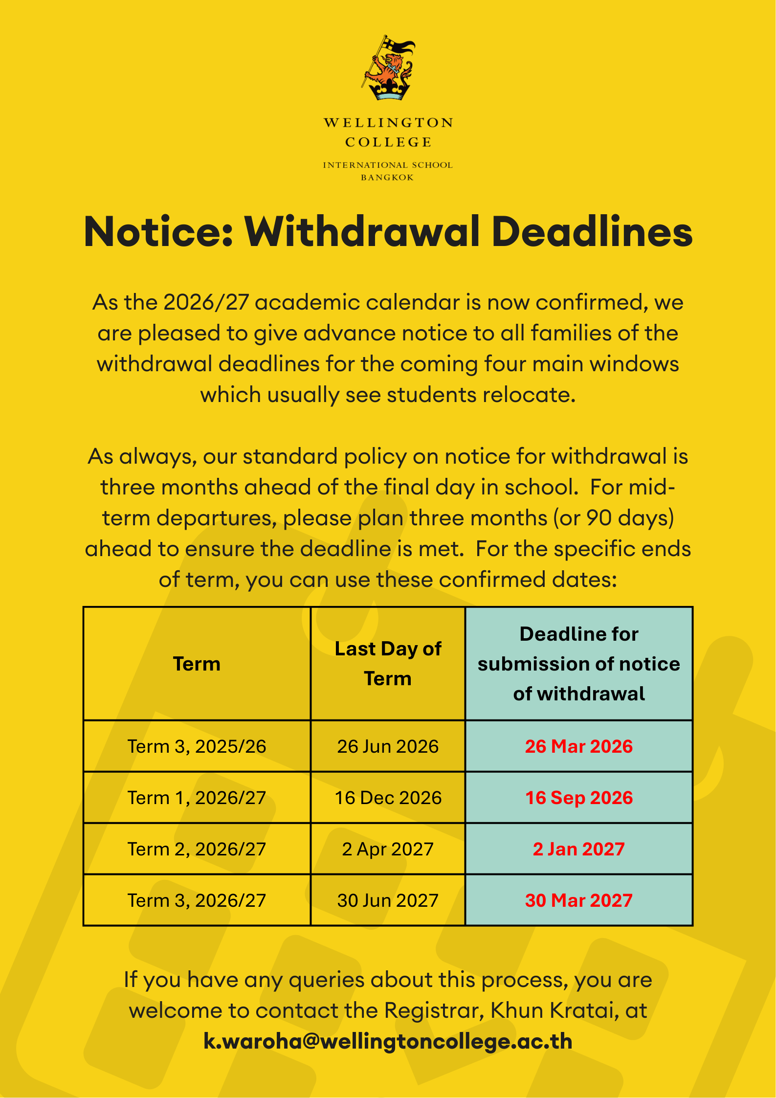 If you have friends, family, or colleagues who are interested in enrolling their children here this year or at any point in the future, please don't forget that we offer a referral fee of THB 50,000 for both families. To view the Terms & Conditions for referral and make a submission, you can access the form via InWellington or by clicking the blue link below: