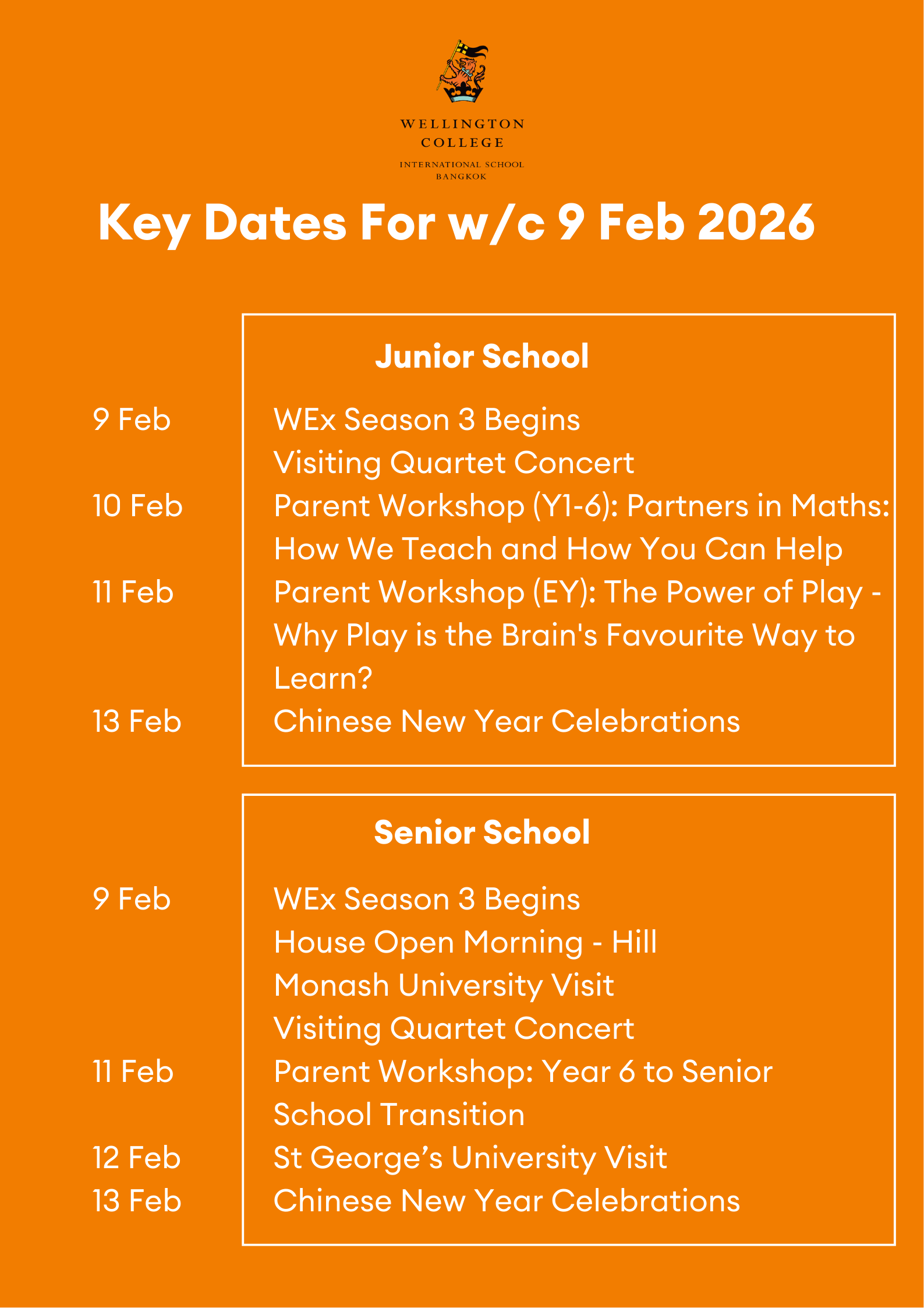 Looking ahead, next week we will be celebrating Chinese New Year. On Friday 13 February, students are invited to dress up in either traditional Chinese clothing or wear red to mark this special occasion. We look forward to sharing this vibrant and meaningful celebration together.